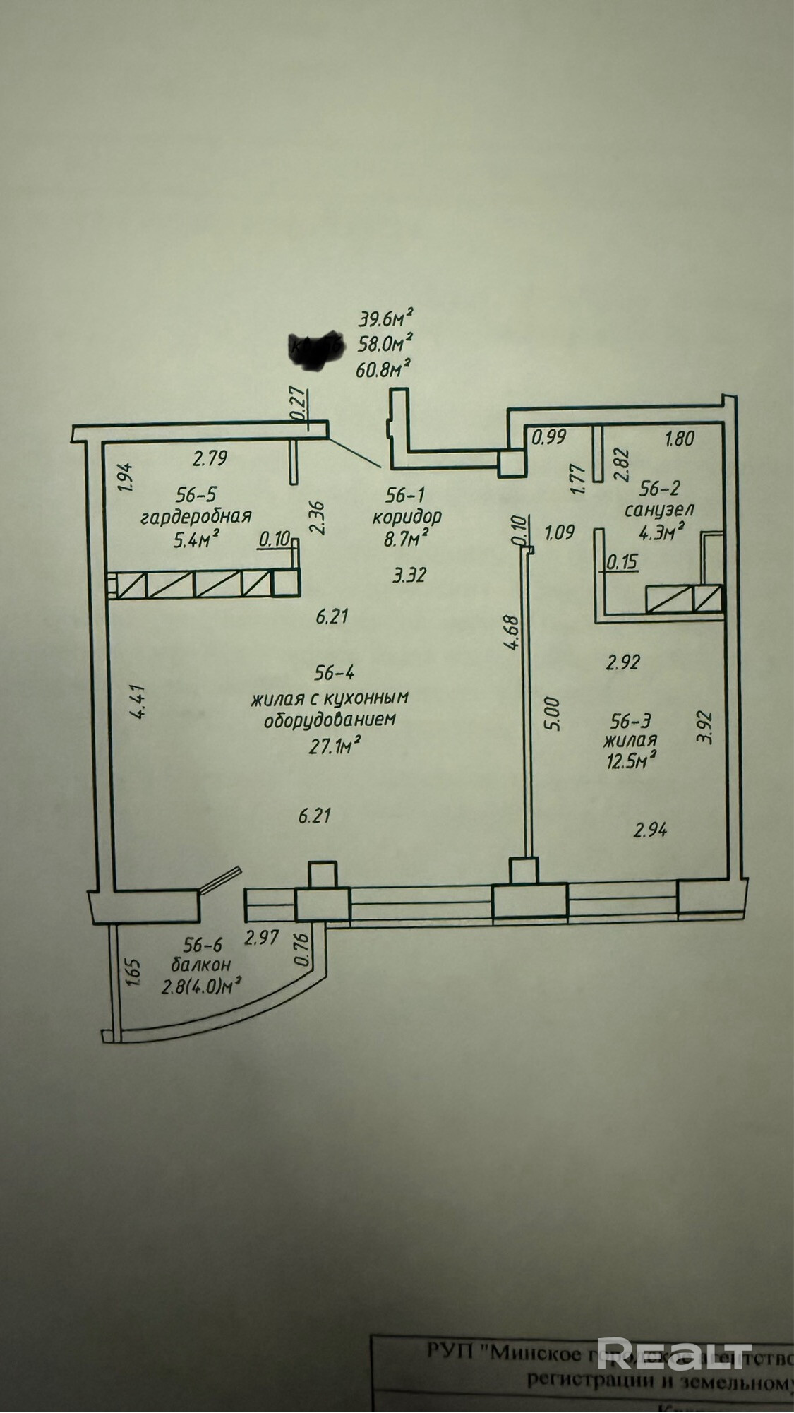 58 м²
