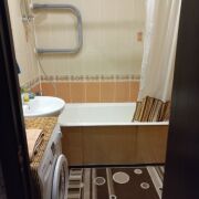 Район благоустроенный, садики, школы, магазины, торговые центры. Все в пешой доступности. До метро пешком восемь минут.
