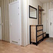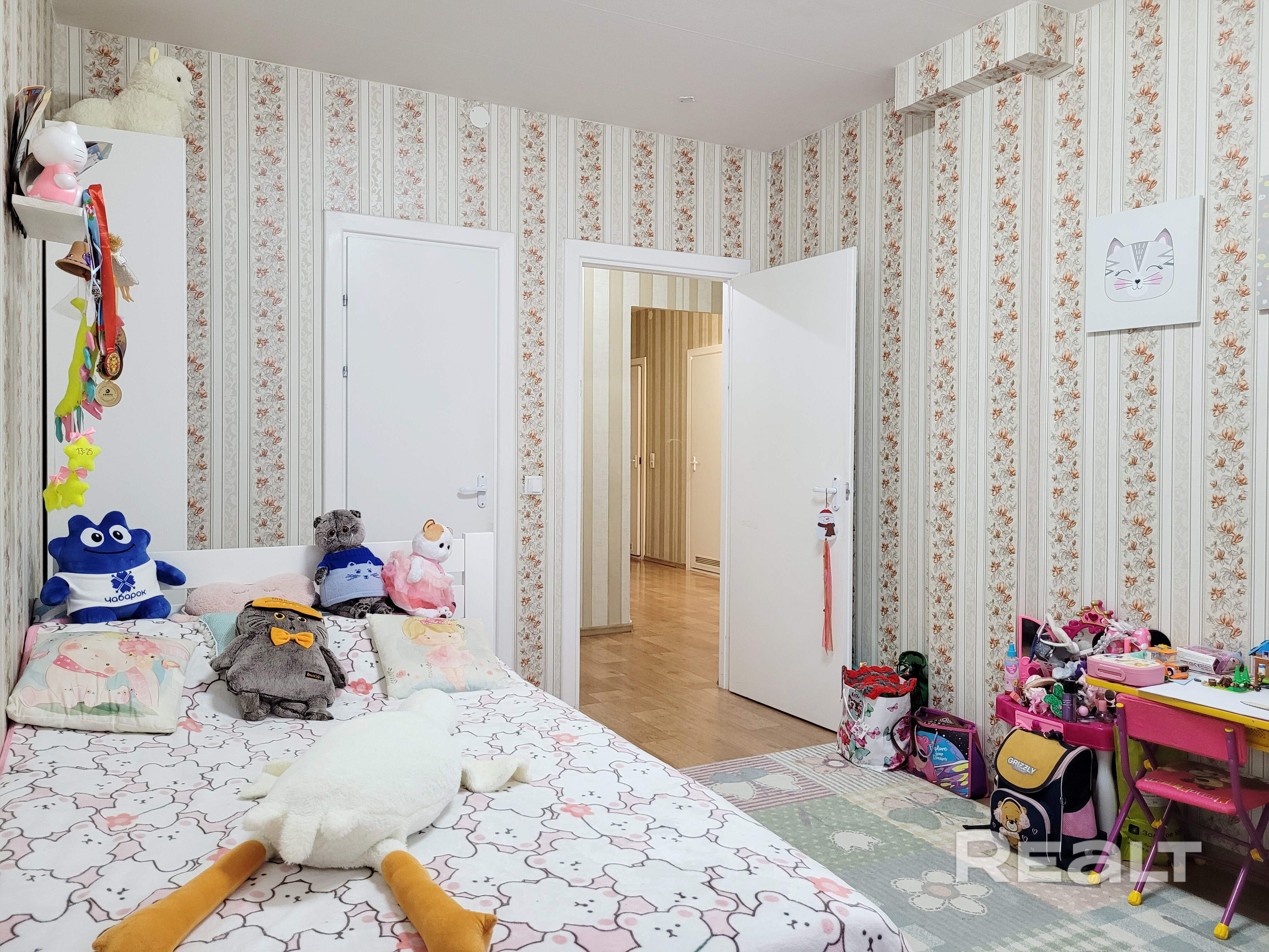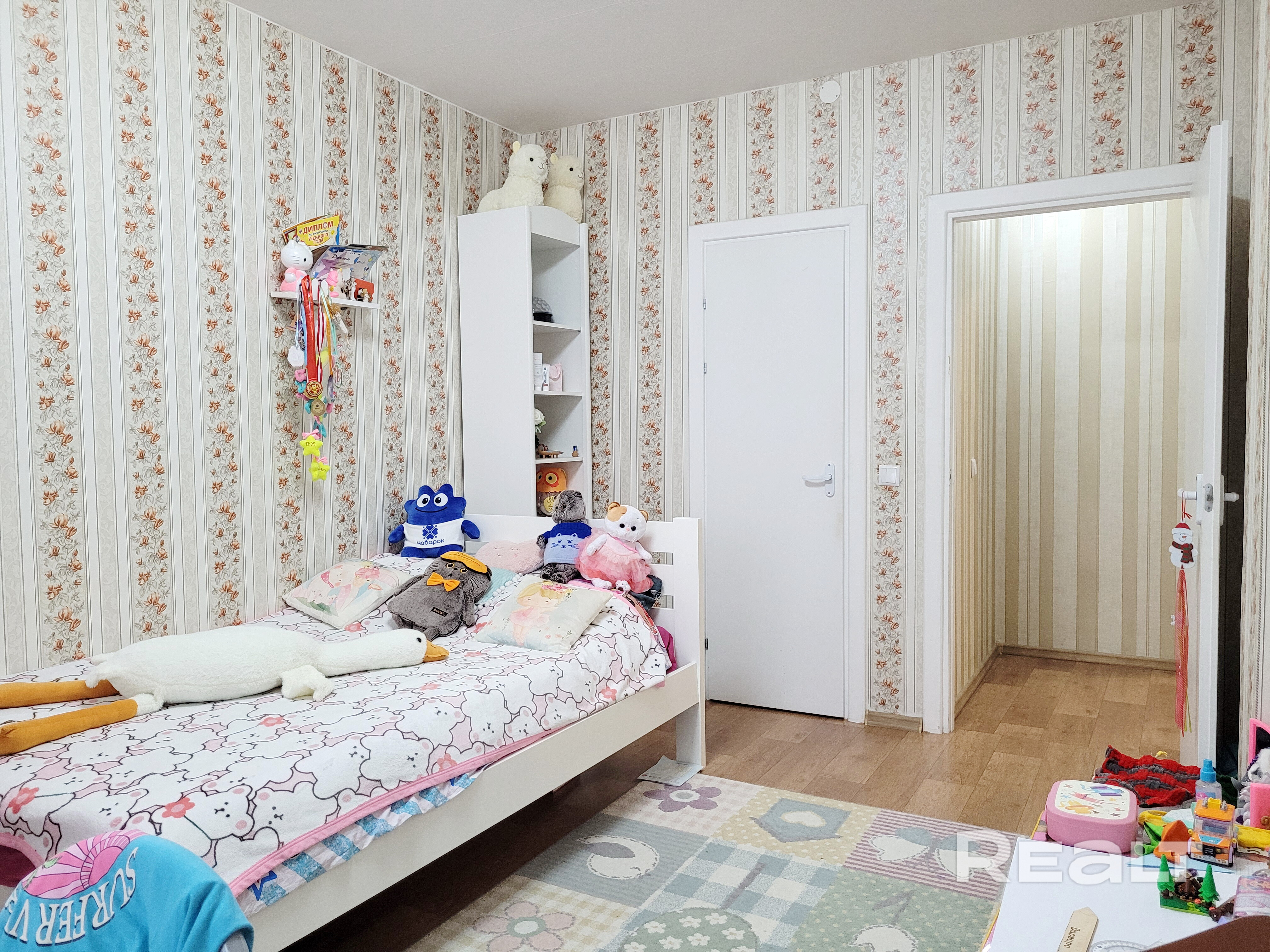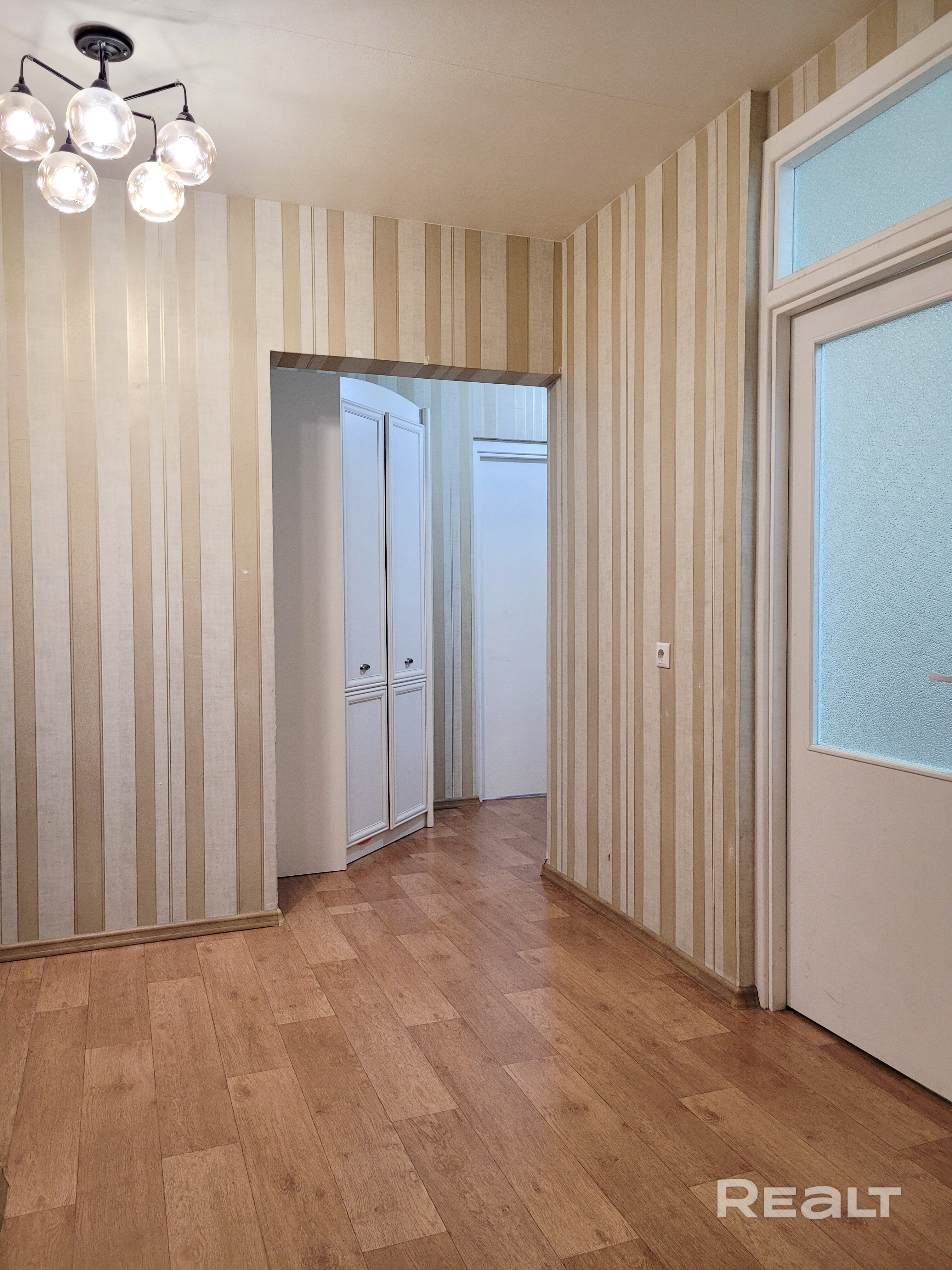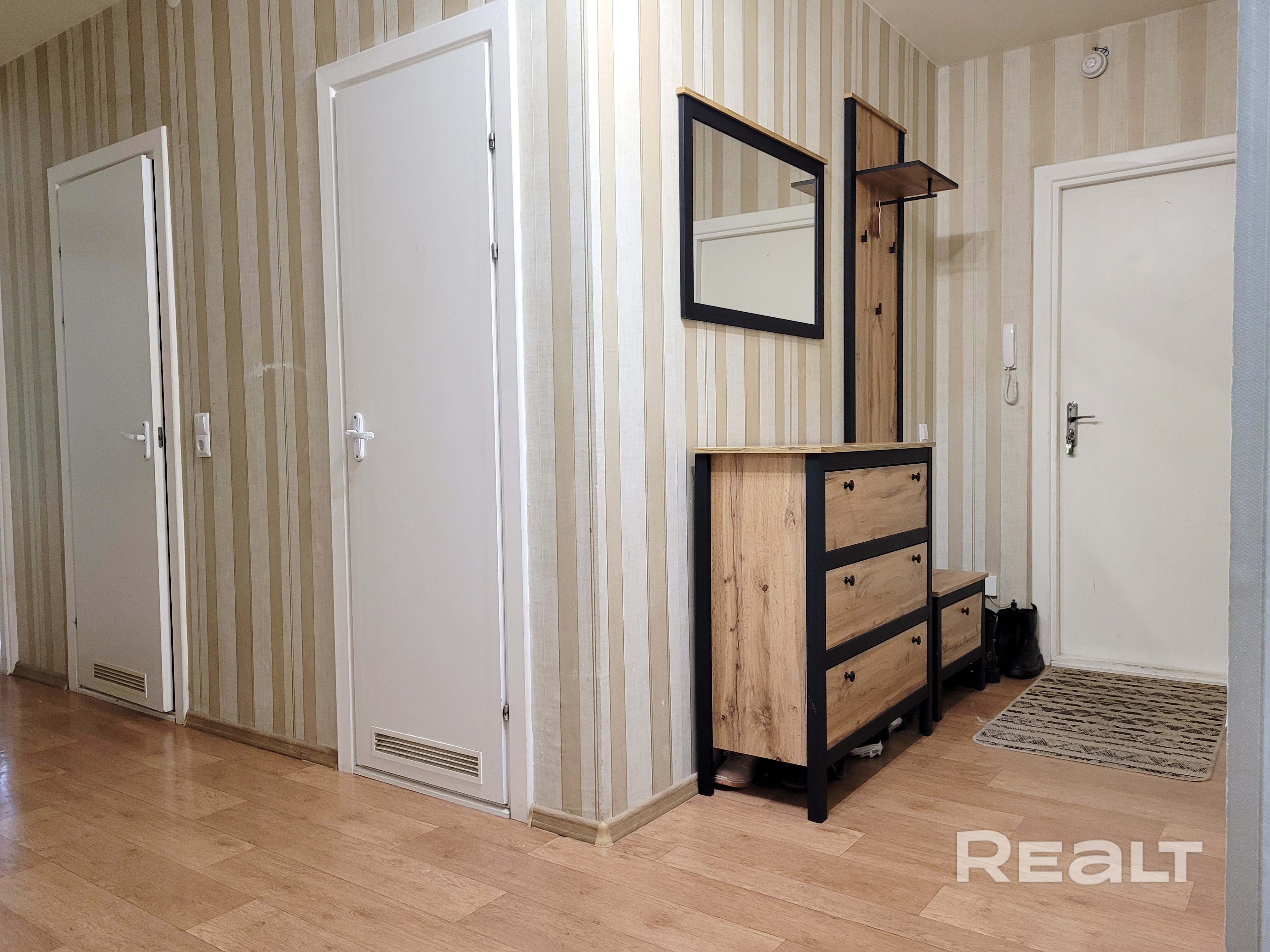 В одной из комнат – гардеробная, в другой – вместительный шкаф купе. В комнатах сделан косметический ремонт. На полу линолеум.