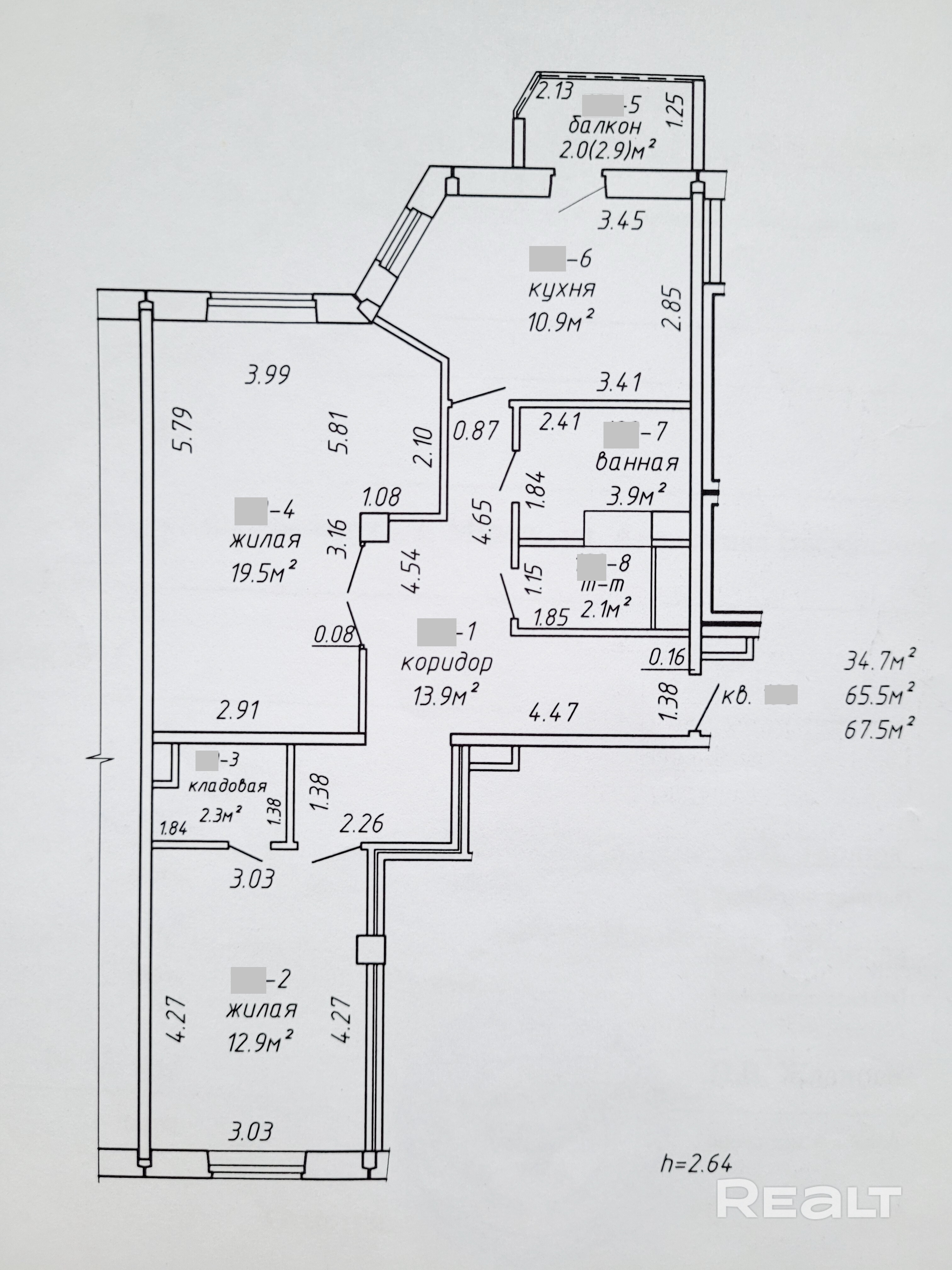 Торг. Общая площадь 65,5 м2, по СНБ – 67,5 м2.