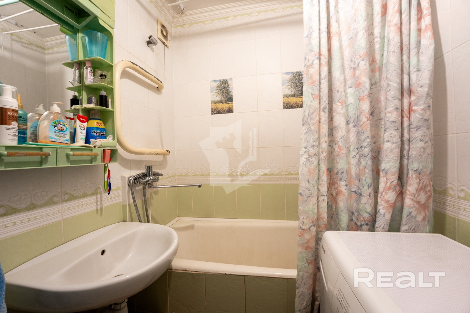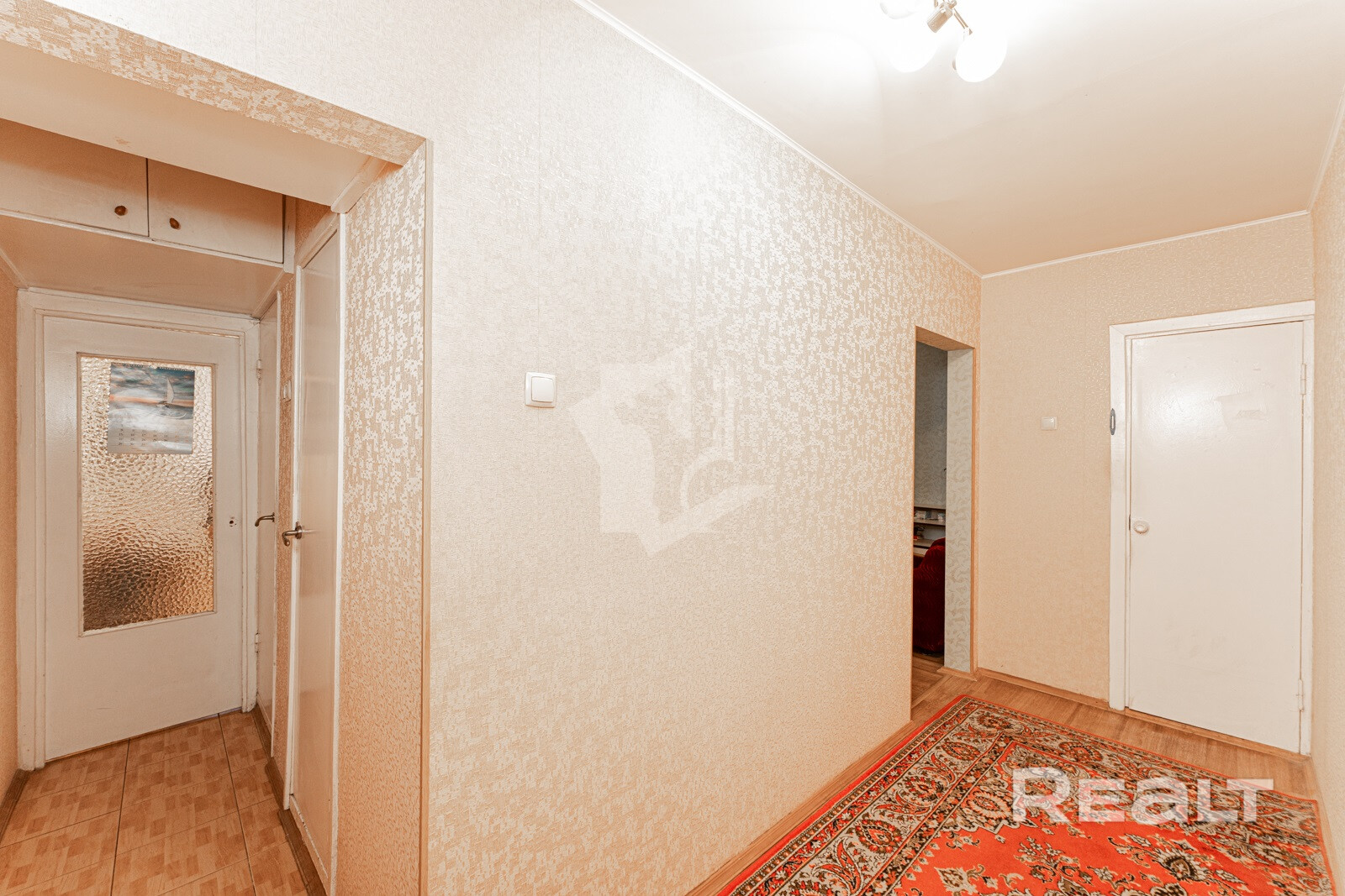 Пол покрыт линолеумом — практичным и удобным в уходе покрытием.