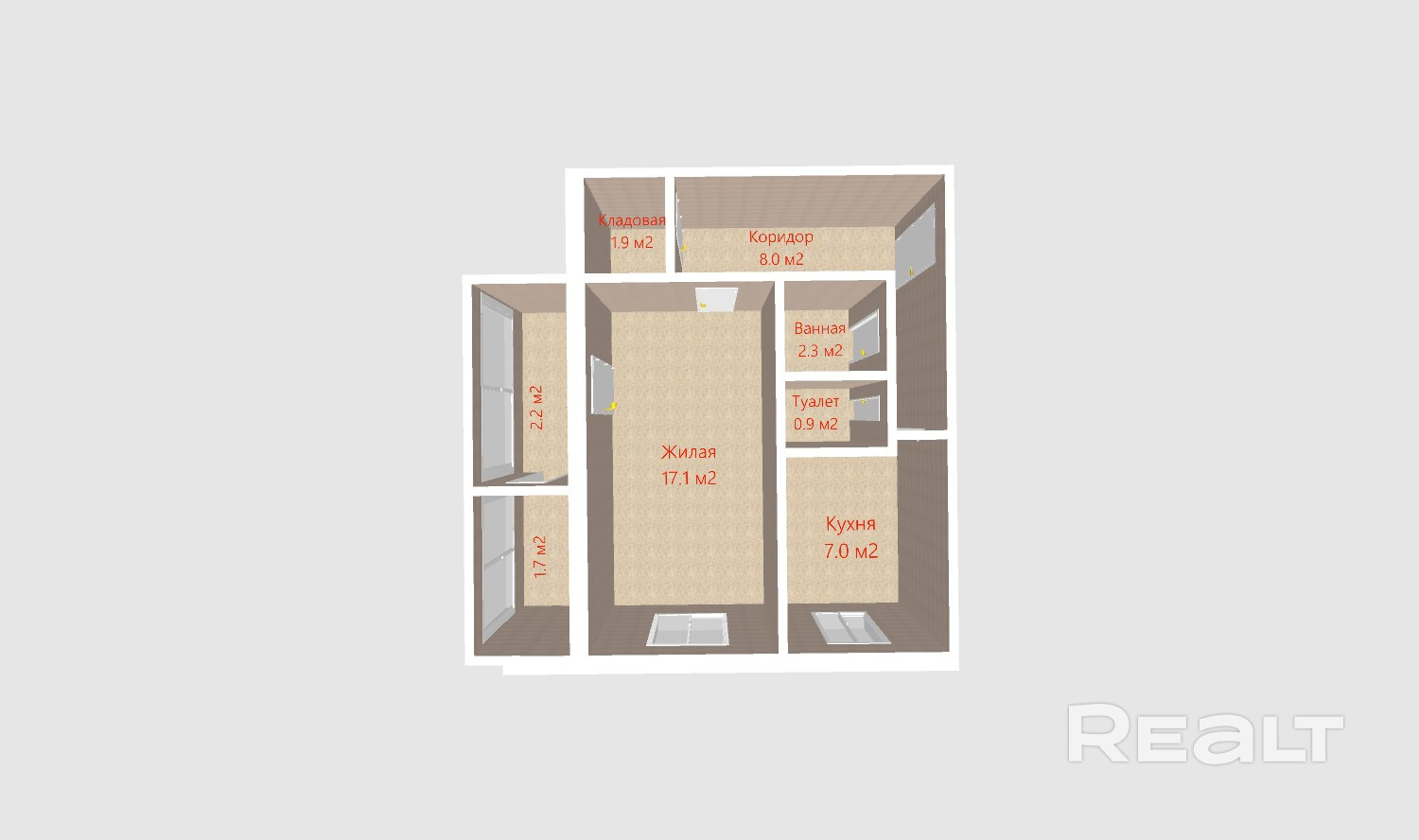 В квартире есть просторная комната — 17,1 м2, светлая кухня — 7 м2, большая застекленная лоджия —7,8 м2, которая идеально подойдет для отдыха или организации рабочего пространства.