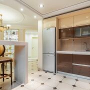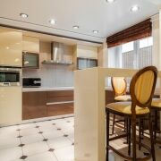 - Кухня с вместительным гарнитуром и современной вытяжкой, барной зоной и подогревом пола, всё это повышает удобство ежедневного использования. Застекленная лоджия расширяет возможности пространства для отдыха и хранения.