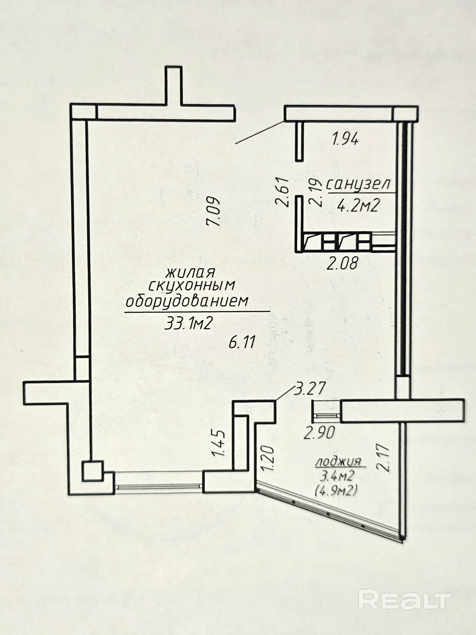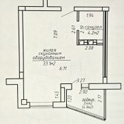 40,7по СНБ/33,1 жилая.Потолки 2,7 м.
