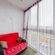 Застекленная лоджия с видом на закат.
