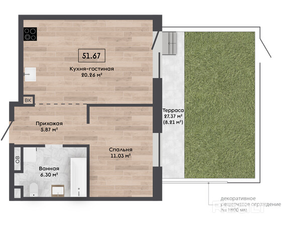 - Формат: евродвушка — просторная кухня-гостиная + отдельная комната