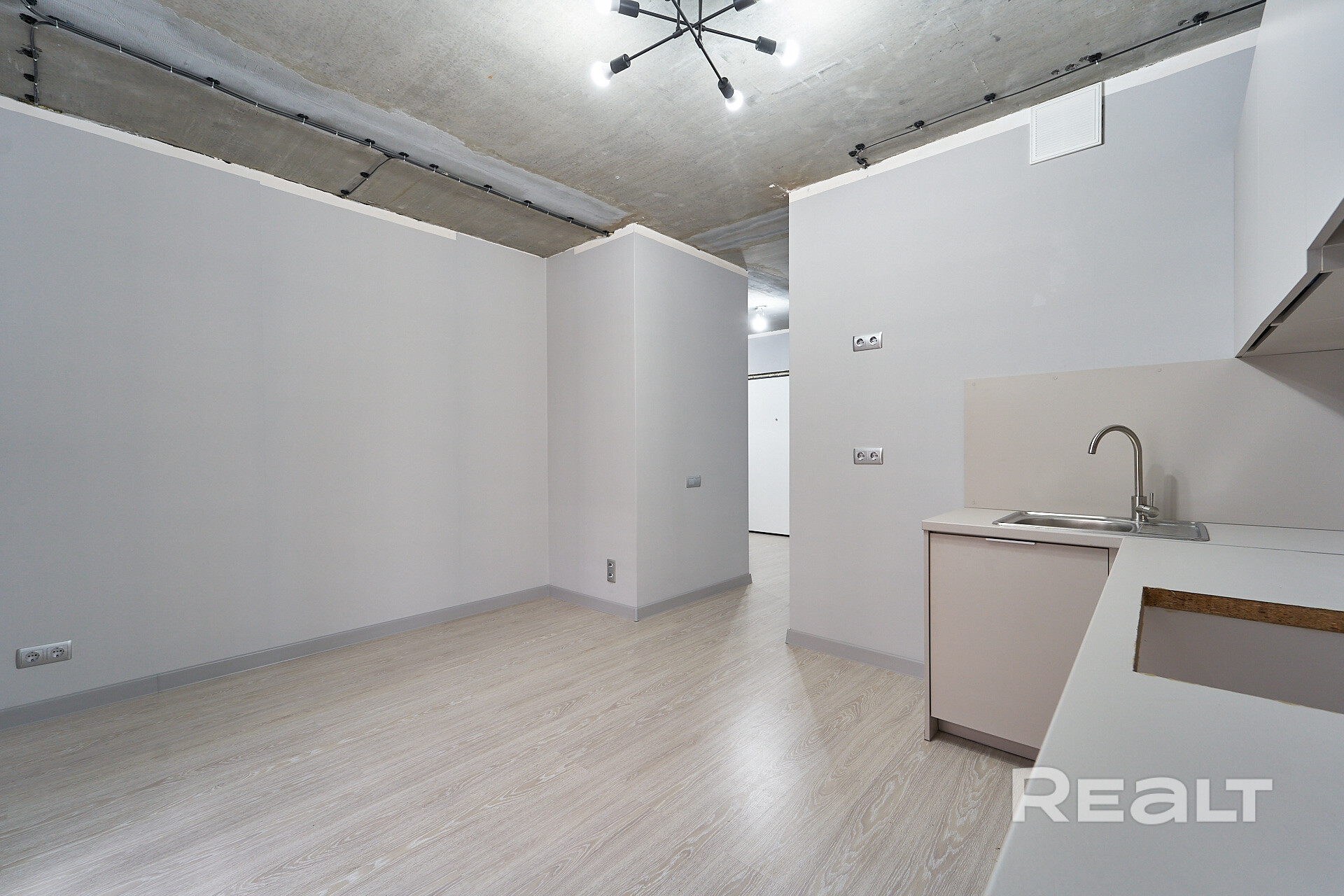Просторная кухня-гостиная с выходом на лоджию и отдельная спальня с местом для гардеробной. Раздельный санузел.