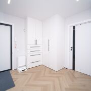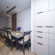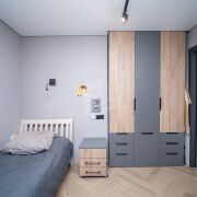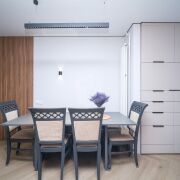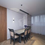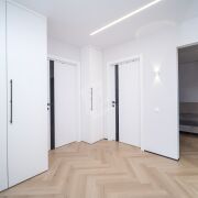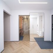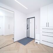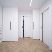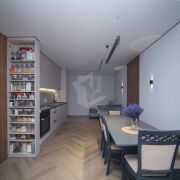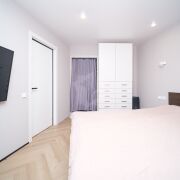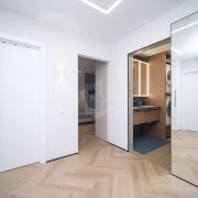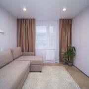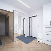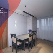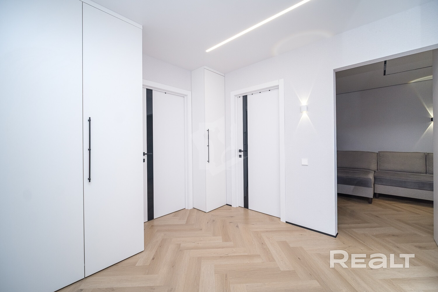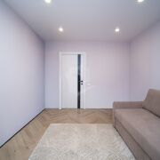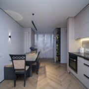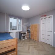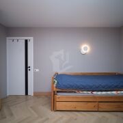 В квартире выполнен свежий дизайнерский ремонт. Сразу обращает на себя внимание многоуровневое фантазийное освещение. Не останется незамеченным современное покрытие пола замковым кварцвинилом: уложенный елочкой по всей квартире, без порогов, он создает единство стиля. Эстетика сочетается с практичностью и экологичностью