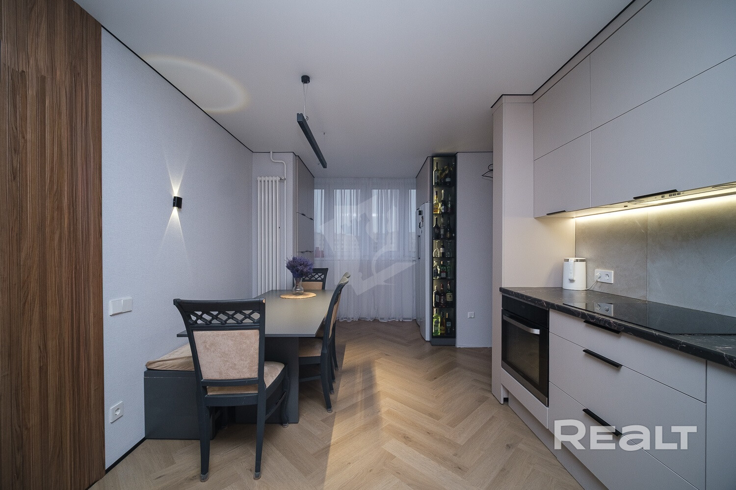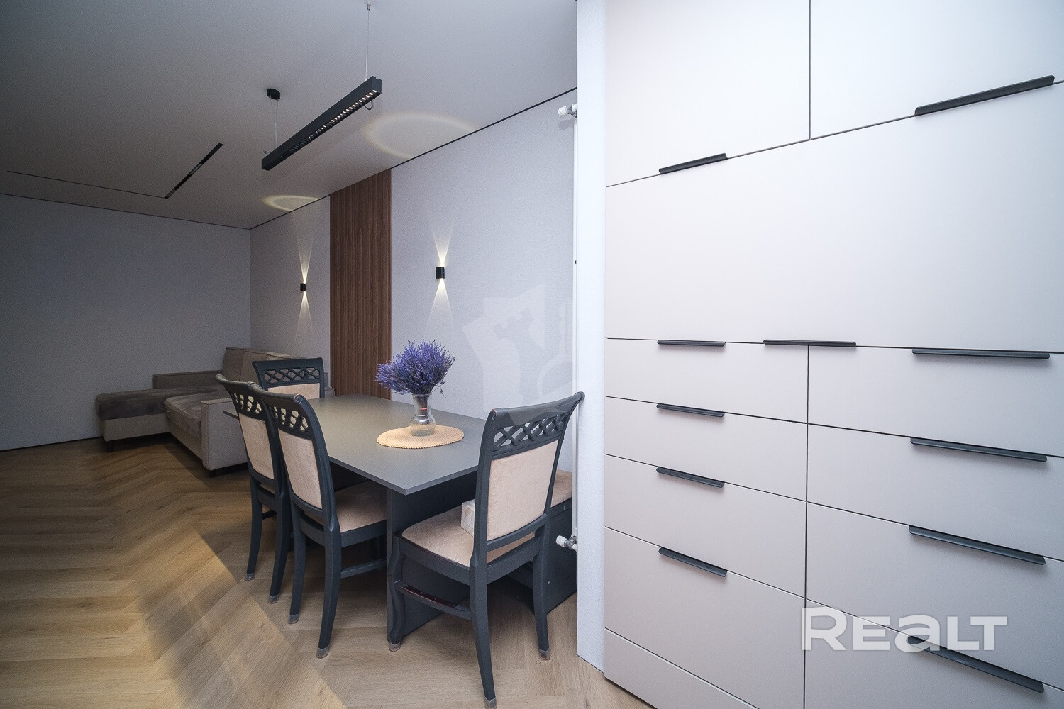 Этот район не просто так ценится минчанами и гостями столицы. Здесь есть все, чего пожелает самый требовательный покупатель: в пяти минутах от дома большой парк – Яблоневый сад, с другой стороны Парк Павлова. Торговые центры, рестораны и кофейни на любой вкус. Салоны красоты, банковские учреждения, магазины, аптека и оптика находятся прямо в вашем доме. Быстрая зарядка электромобилей на парковке под окнами.