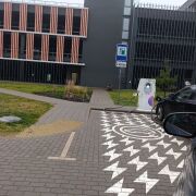 На стоянке у дома есть быстрые зарядки для электроавтомобиля.