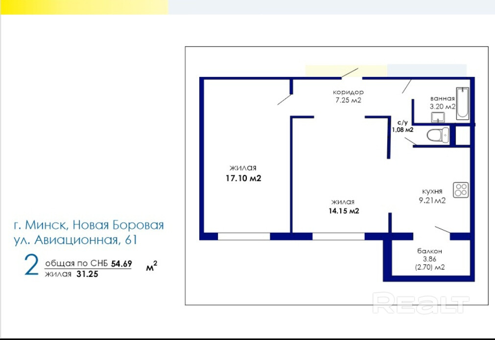 54.69 м²