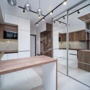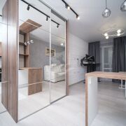 - дверь не распашная, а раздвижная. Дверь с зеркалом.
