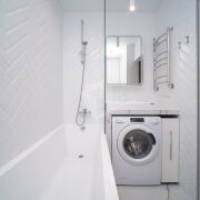 - ванна с душем. Рядом с душем установлена шторка из закаленного стекла.