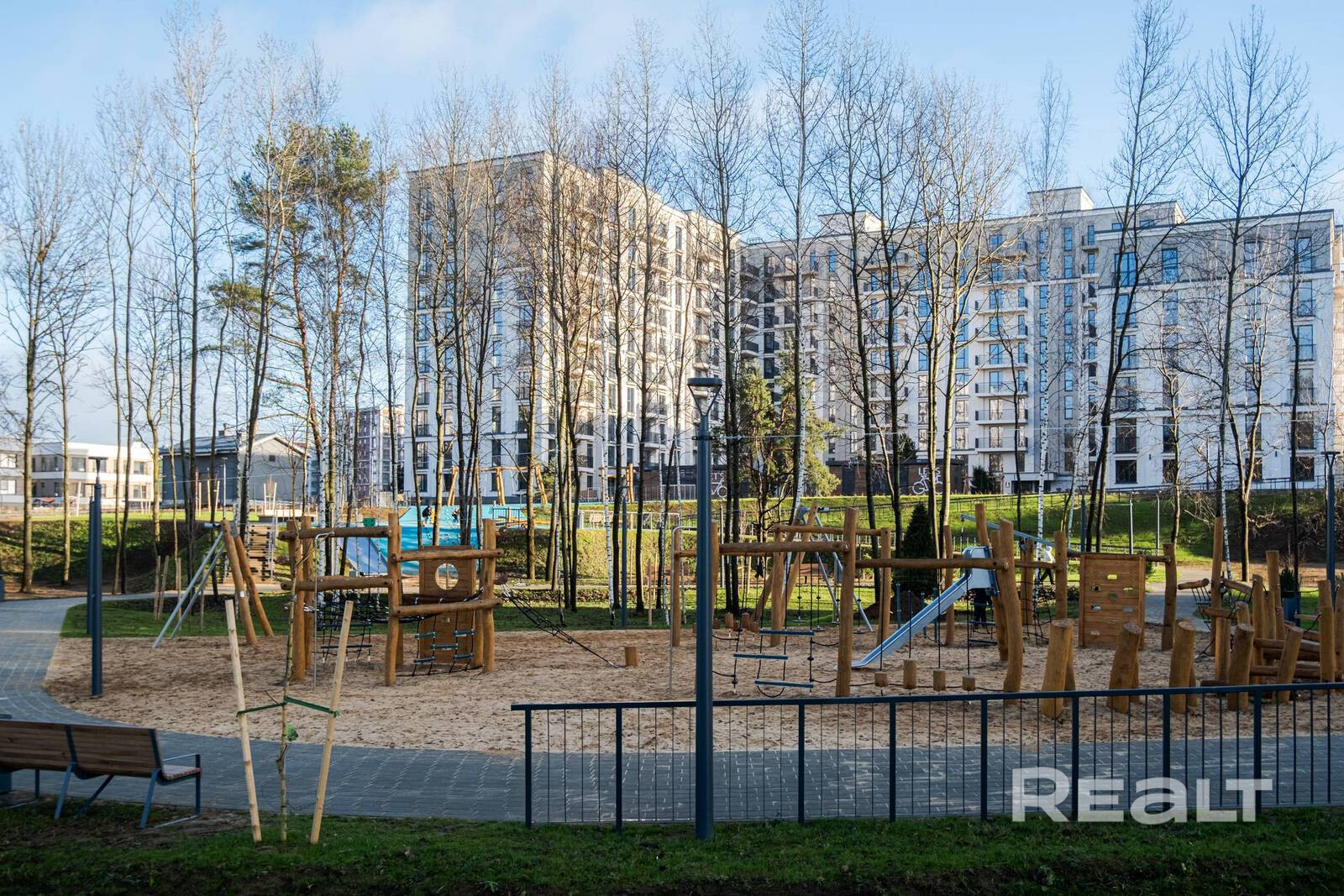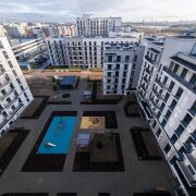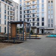 Двор закрыт, оборудован беседками и лежаками, детскими игровыми комплексами, подземной системой сбора мусора.