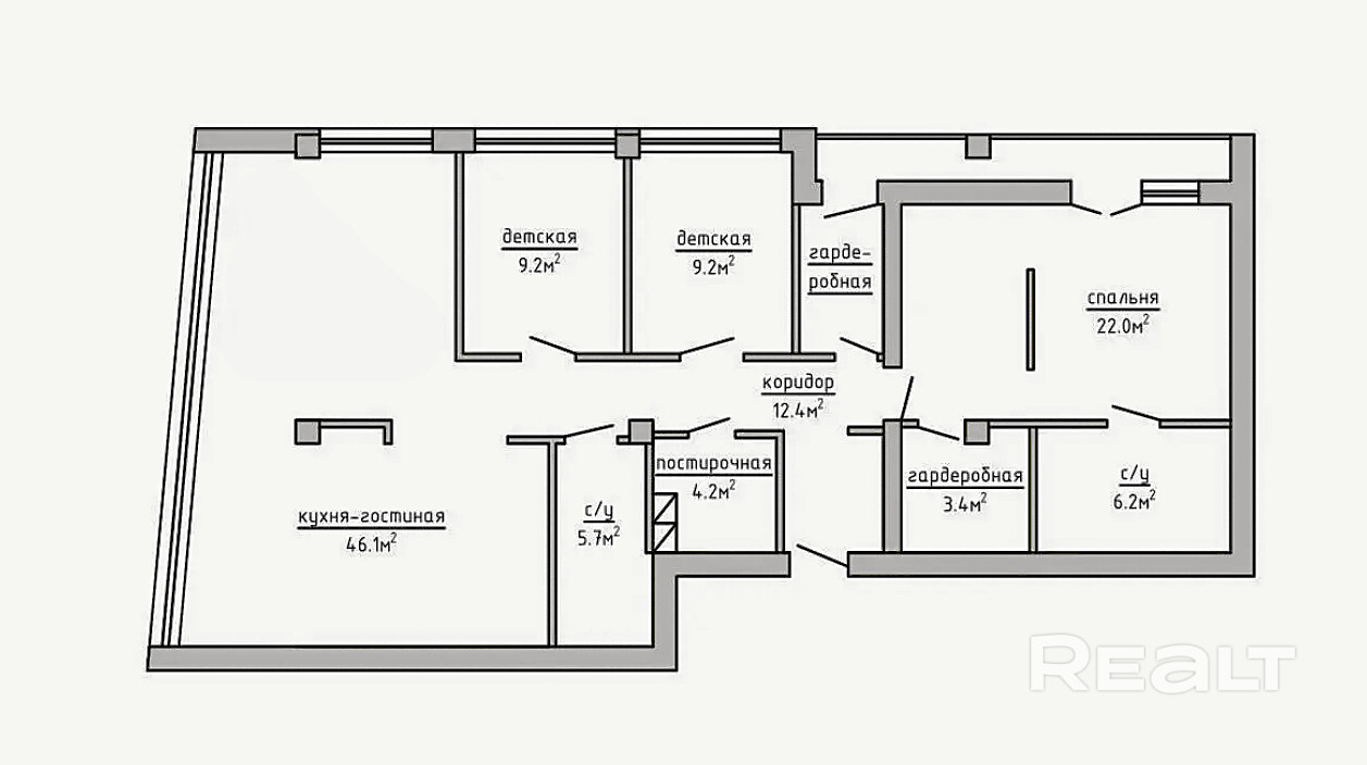 Квартира площадью 128.1 кв.м. по СНБ поражает своей функциональностью и безупречным планировочным решением. Вас ждут 3 изолированные комнаты ( а именно просторная мастер спальня и две детские) , светлая и просторная кухня-гостиная, два санузла, две гардеробные и удобная постирочная.