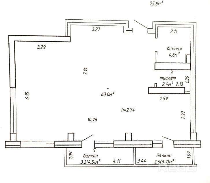 Продается просторная трехкомнатная квартира (площадь 75.8 кв.м) в новом монолитном доме.