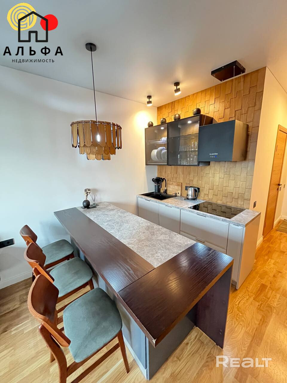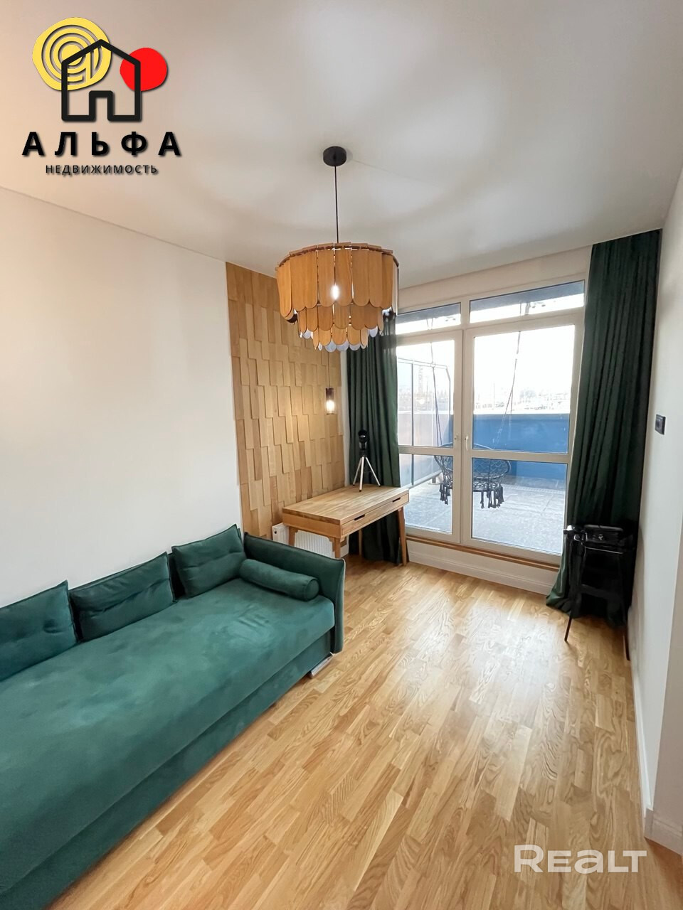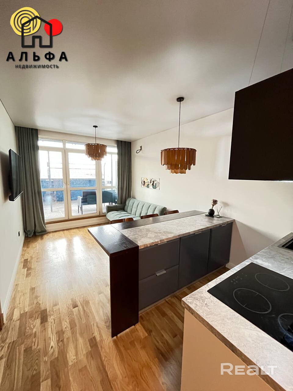 Расположение в динамично  развивающемся районе «Минск Мир» обеспечивает близость к магазинам, ресторанам, паркам и отличную транспортную доступность.