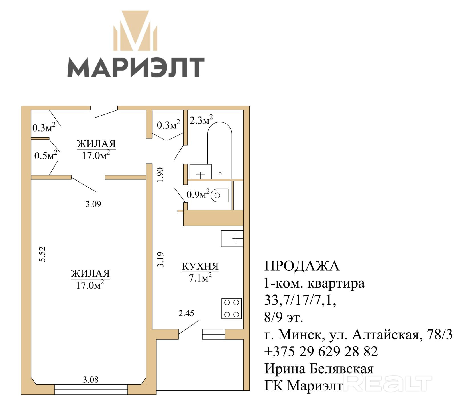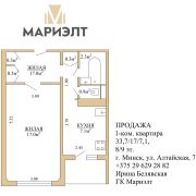 Адрес: ул. Алтайская, 78/3 Этаж: 8/9 Общая площадь: 33,7 кв.м.