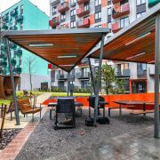 - Дворы закрытые от машин, много зон для отдыха, детских площадок, мест для барбекю, зелёных уголков.
