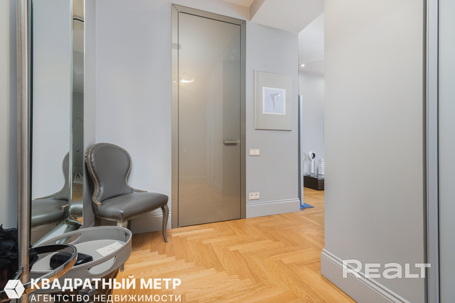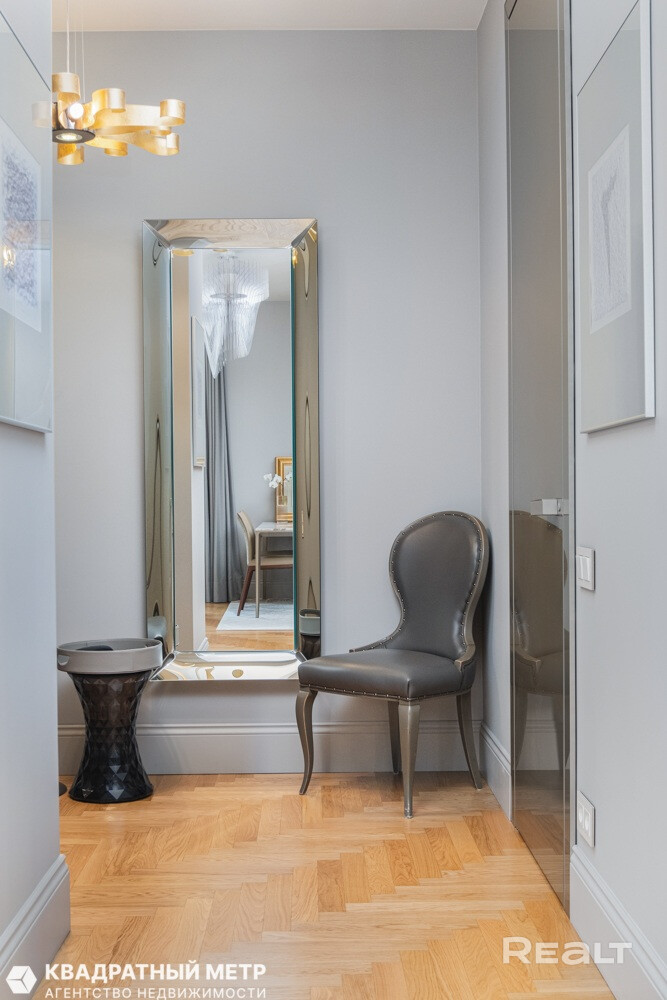 Стены покрашены Little Green (Англия), на полу паркет дубовый (Бельгия) по всей квартире, плинтус МДФ крашенный, межкомнатные двери Rimadesio, в алюминиевом профиле, 2.90 высотой. В квартире установлена качественная электрика, розетки и выключатели Gira из последней коллекции.