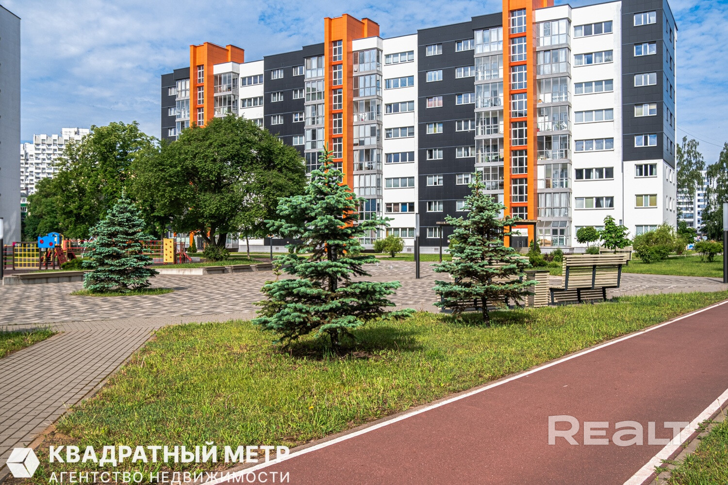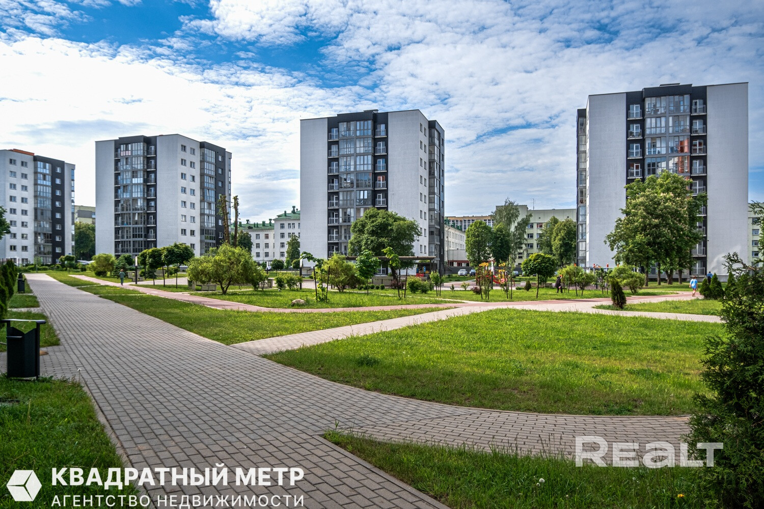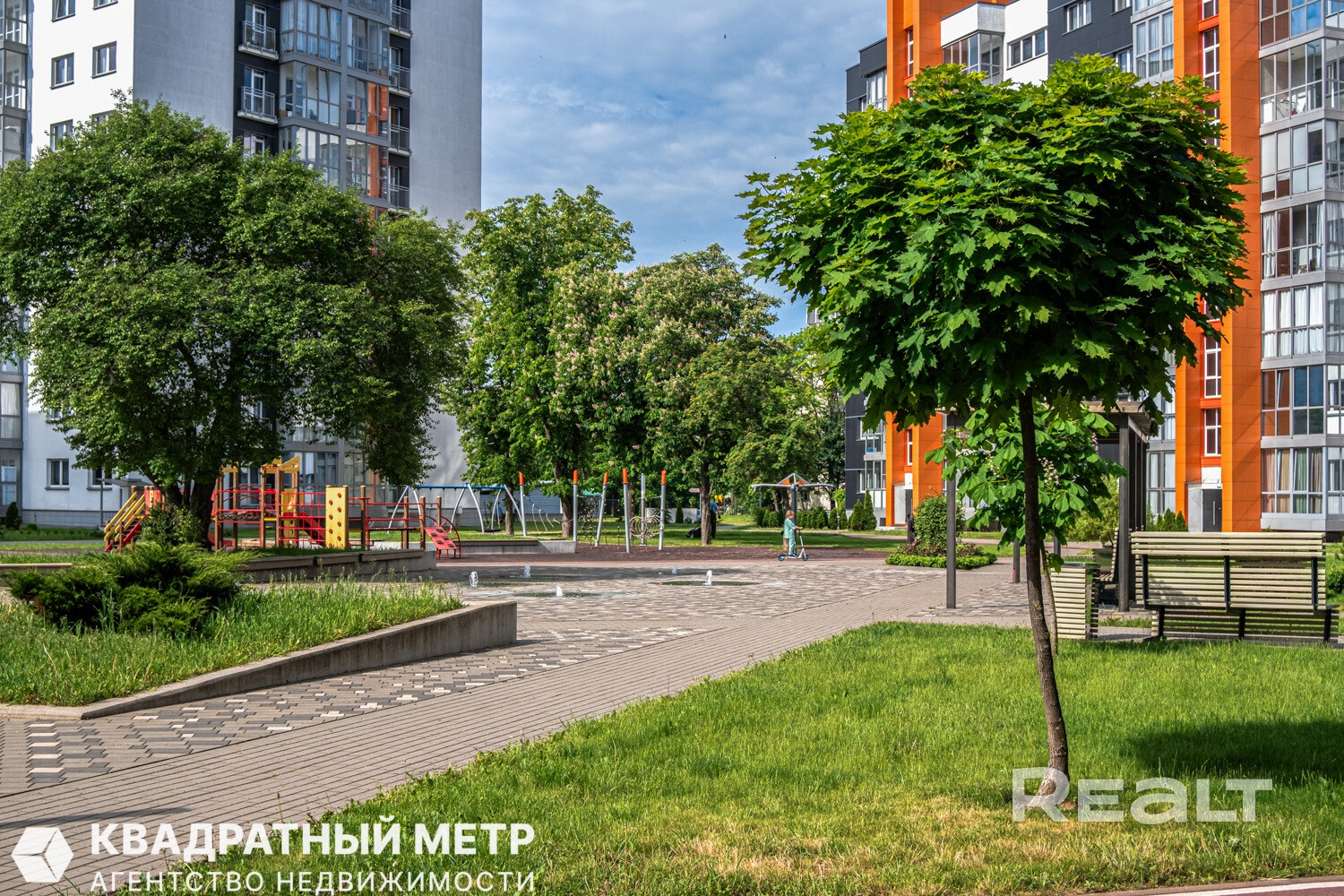 В шаговой доступности расположены продуктовый рынок, торговые центры, множество развлекательных заведений. Территория комплекса благоустроена, имеется детская площадка, зона для выгула собак, дорожки, фонтан в центре и большое количество зелени.
