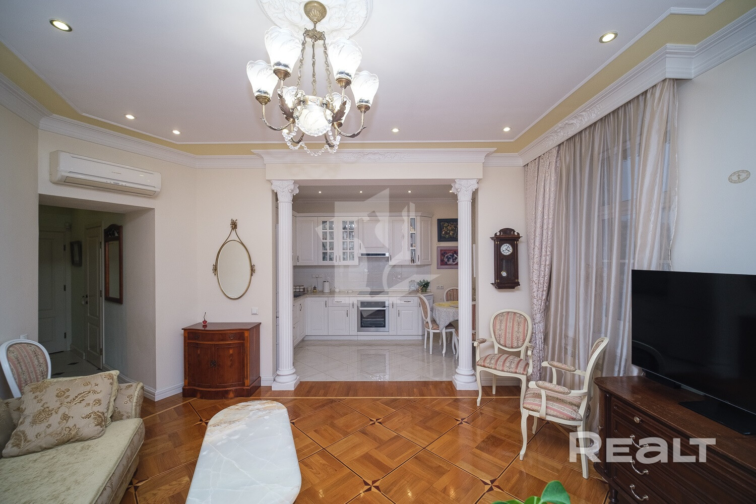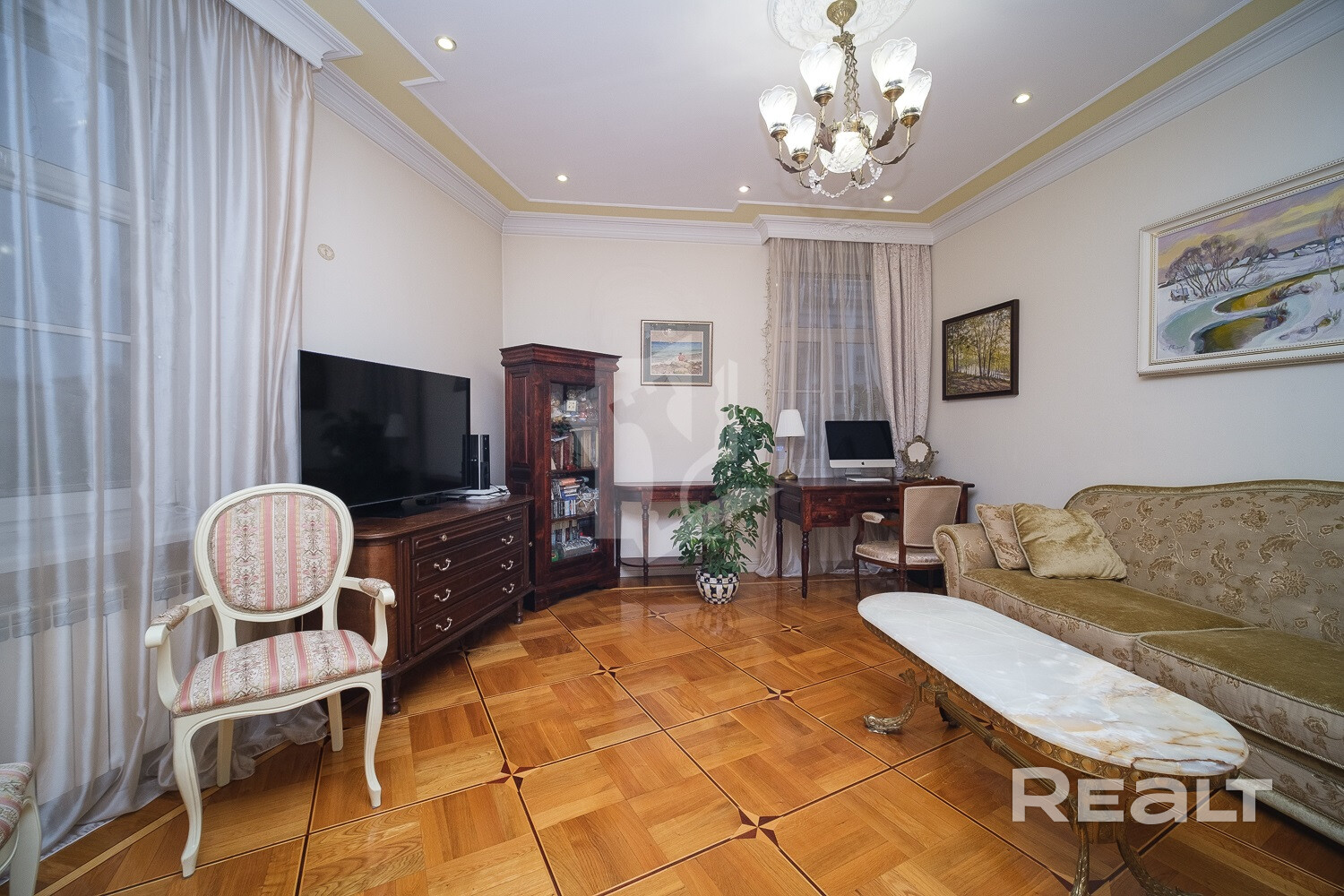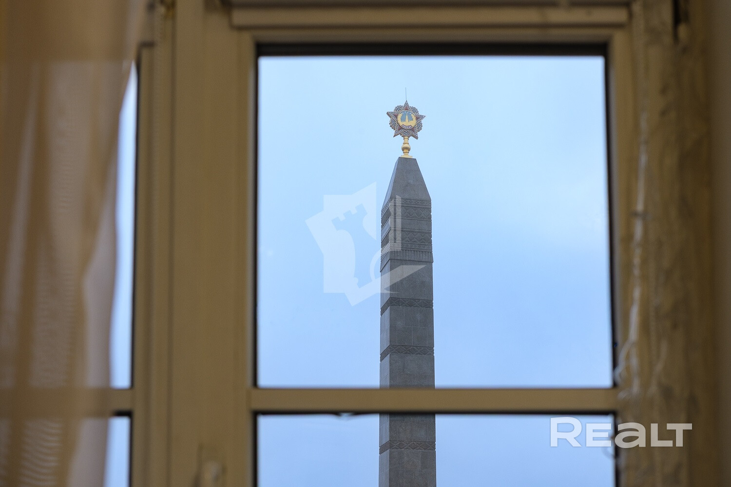 Этот дом всегда будет в центре внимания: монумент Победы, через дорогу расположен клубный жилой комплекс премиум класса DEPO, парк культуры и отдыха имени М. Горького, центральный детский парк, река Свислочь, парк имени Янки Купалы, сквер имени М. Казея, Большой театр Беларуси и Белорусский цирк, станция метро Площадь Победы, рядом с домом остановки наземного транспорта, во дворе достаточное количество мест для парковки автомобиля, продуктовый магазин, легендарное кафе «Берёзка».