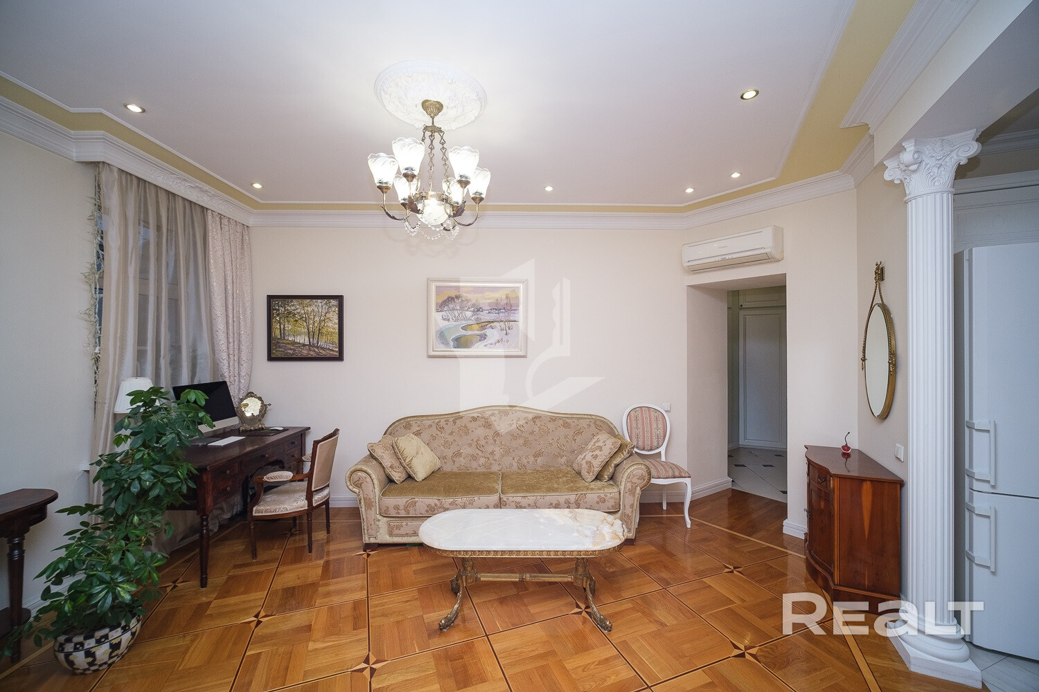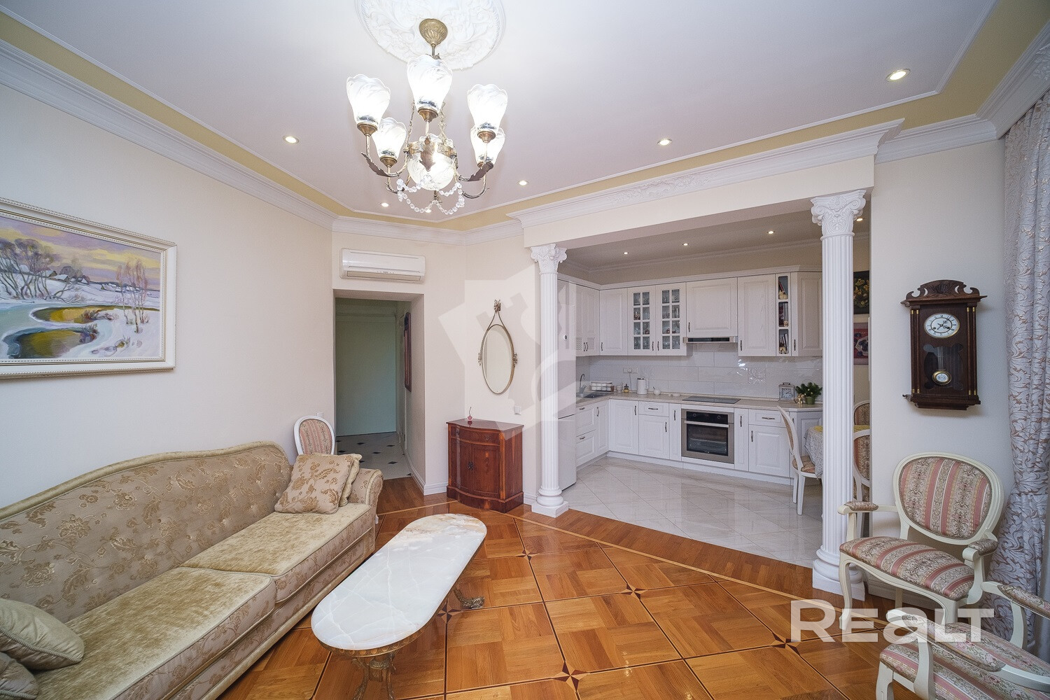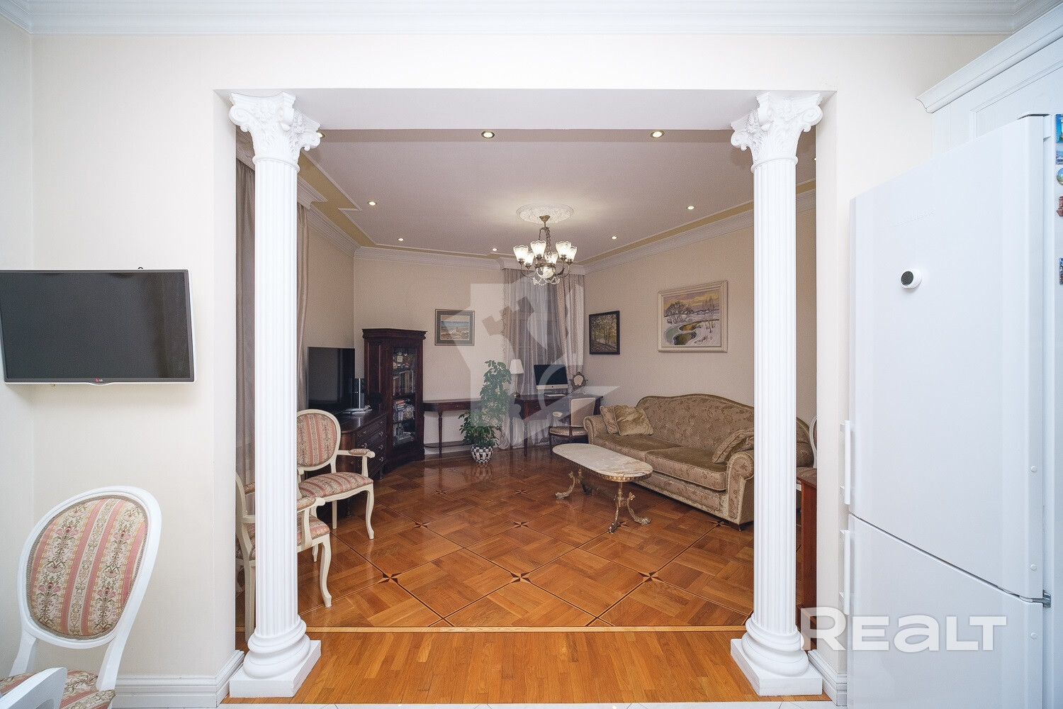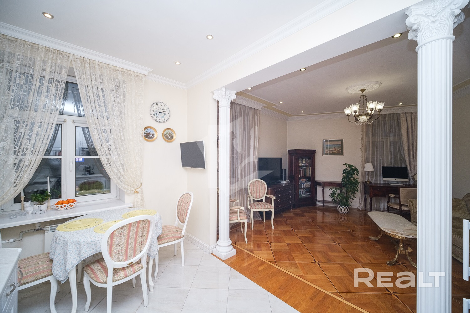 Этот дом всегда будет в центре внимания: монумент Победы, через дорогу расположен клубный жилой комплекс премиум класса DEPO, парк культуры и отдыха имени М. Горького, центральный детский парк, река Свислочь, парк имени Янки Купалы, сквер имени М. Казея, Большой театр Беларуси и Белорусский цирк, станция метро Площадь Победы, рядом с домом остановки наземного транспорта, во дворе достаточное количество мест для парковки автомобиля, продуктовый магазин, легендарное кафе «Берёзка».