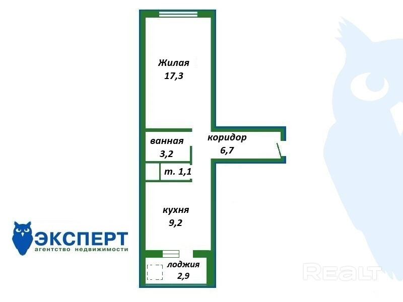 - Большая кухня 9.2 кв.м. с выходом на застекленный балкон.