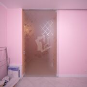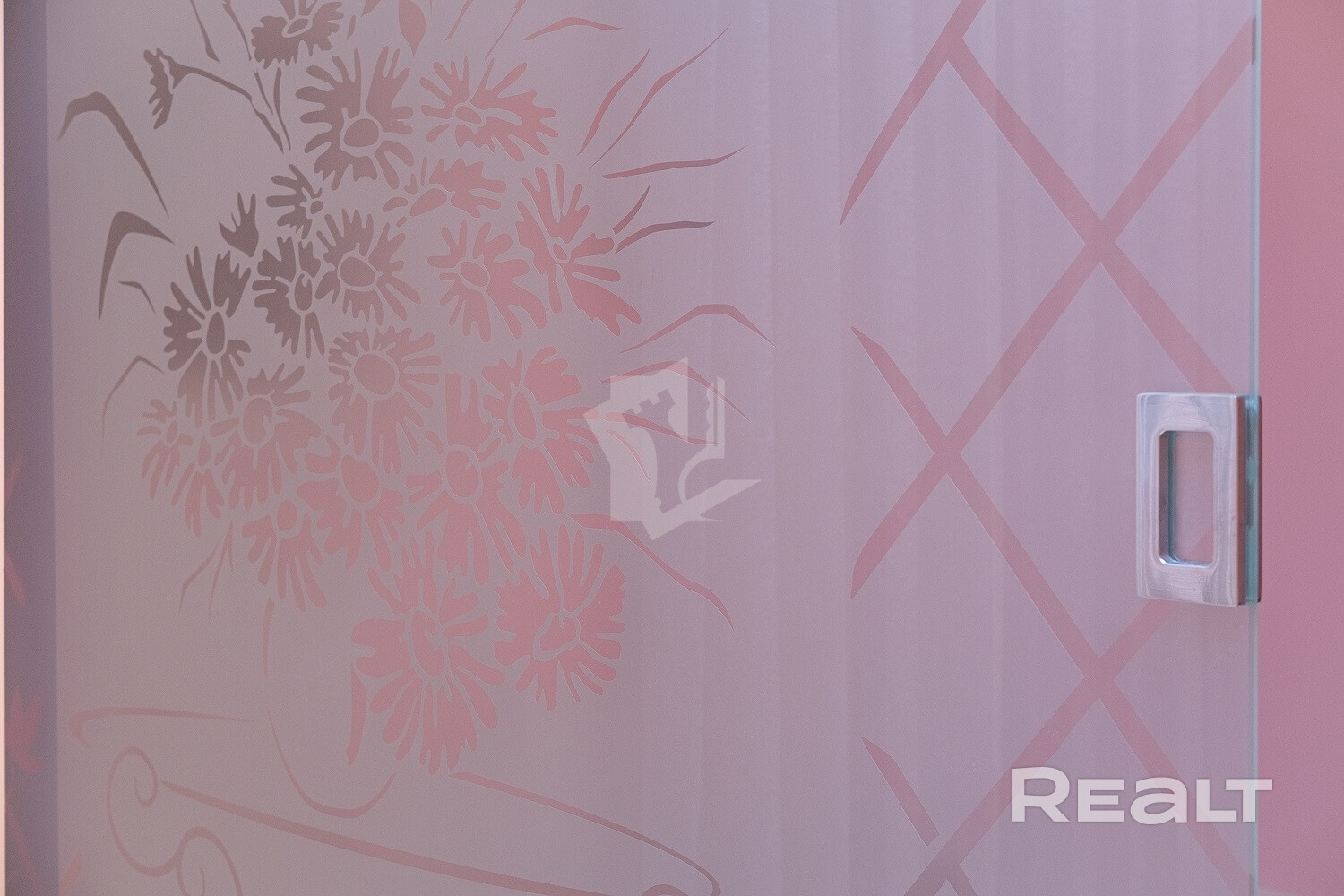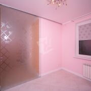 Раздвижная перегородка Lazio (с авторским рисунком) между гостиной и кухней. Остекление окон - новые деревянные 3-ех камерные стеклопакеты.