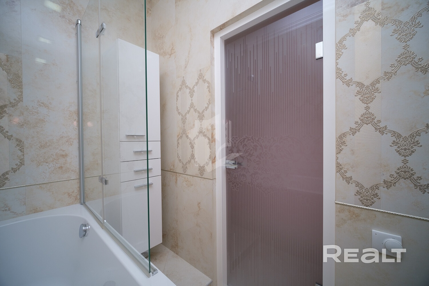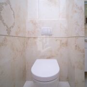 Теплые полы в ванной, кухне и прихожей; установлен бойлер Ariston. Натяжные тканевые потолки Cerrutti.