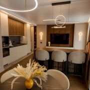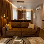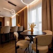 Современная планировка квартиры с просторной кухней-гостиной, объединенной в единое пространство, создает комфорт и функциональность. В квартире выполнен дизайнерский ремонт с использованием материалов высокого качества, все детали продуманы до мелочей.