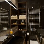 В ванной установлена сантехника Hansgrohe и Villeroy  Boch, а также керамогранит. Кухня оборудована современной бытовой техникой Bosch. При продаже остается вся мебель и техника, что позволяет вам сразу же заселиться и наслаждаться комфортной жизнью.