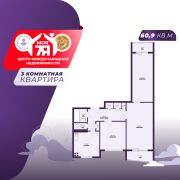 - Общая площадь составляет – 60,9 кв.м., жилая 39,9 кв.м.