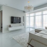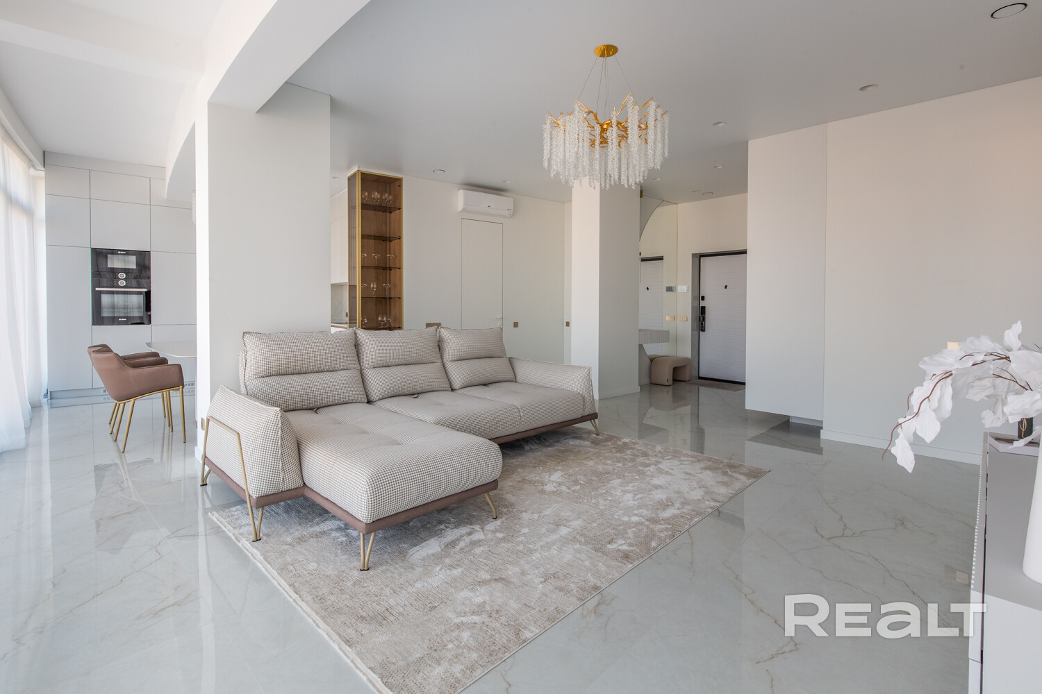 Пространство квартиры составляет 100.1 м2, оформлено с элегантным вкусом и вниманием к деталям.