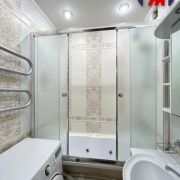 -Раздельный санузел, облицованный плиткой -  настоящее удобство для повседневной жизни. Сантехнические трубы заменены. Новому владельцу остается стиральная машина.