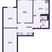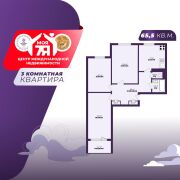 - Общая площадь квартиры 65,5 кв.м по СНБ, жилая 43,5 кв. м, кухня 7,1 кв. м. Планировка практичная, комнаты изолированы, пространство легко организовать под разные нужды.