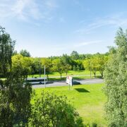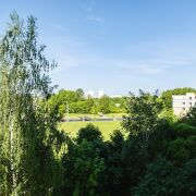 -А если вам нужно уехать по делам, то автобусные остановки рядом с домом обеспечат удобное транспортное сообщение. А до станции метро "Спортивная" всего 10 минут пешком.
