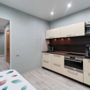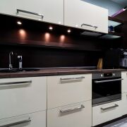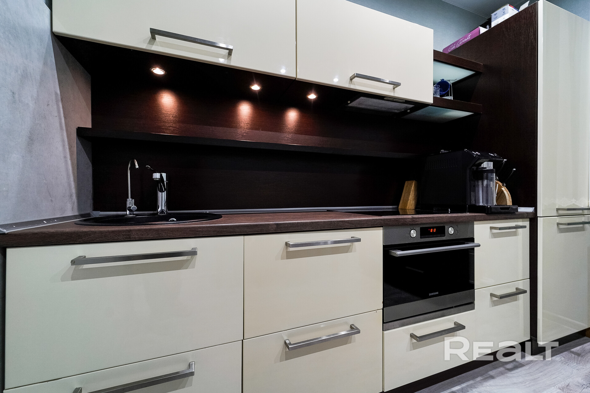 Встроенная кухня с варочной поверхностью и духовым шкафом Samsung, встроенный холодильник Bosch.