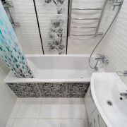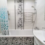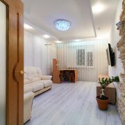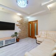 Натяжные потолки, полы-ламинат, ванна, туалет-современная плитка,смесители Grohe.