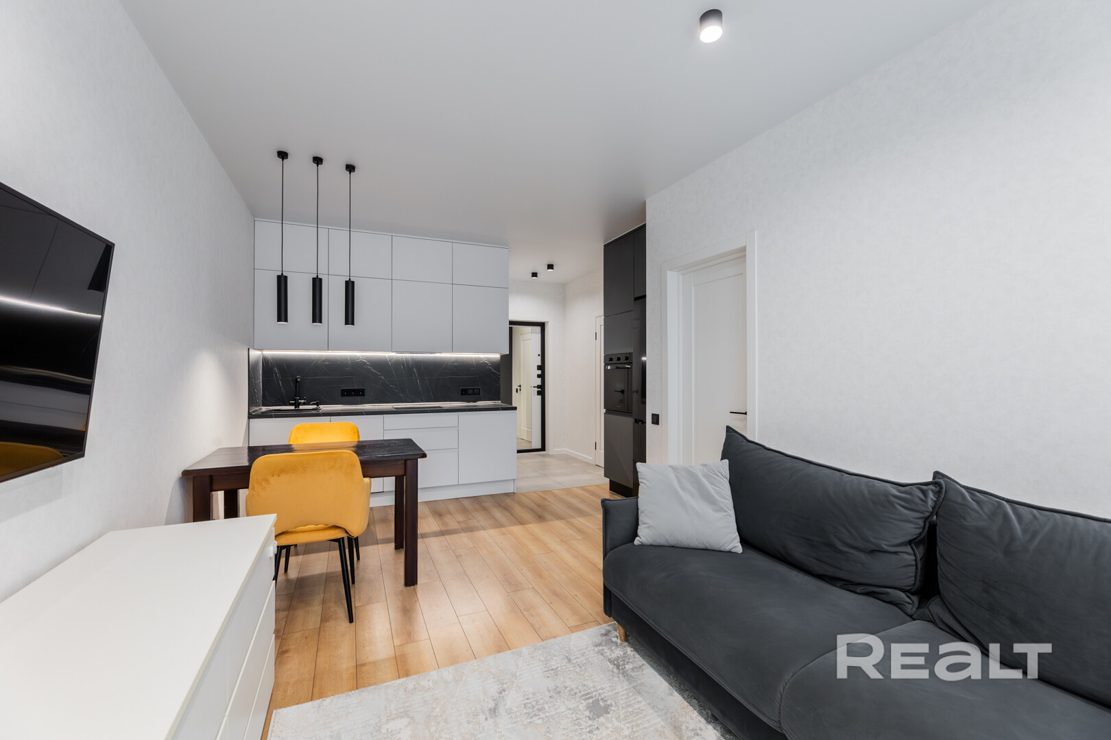 - Современная планировка: кухня-гостиная, спальня и гардеробная!