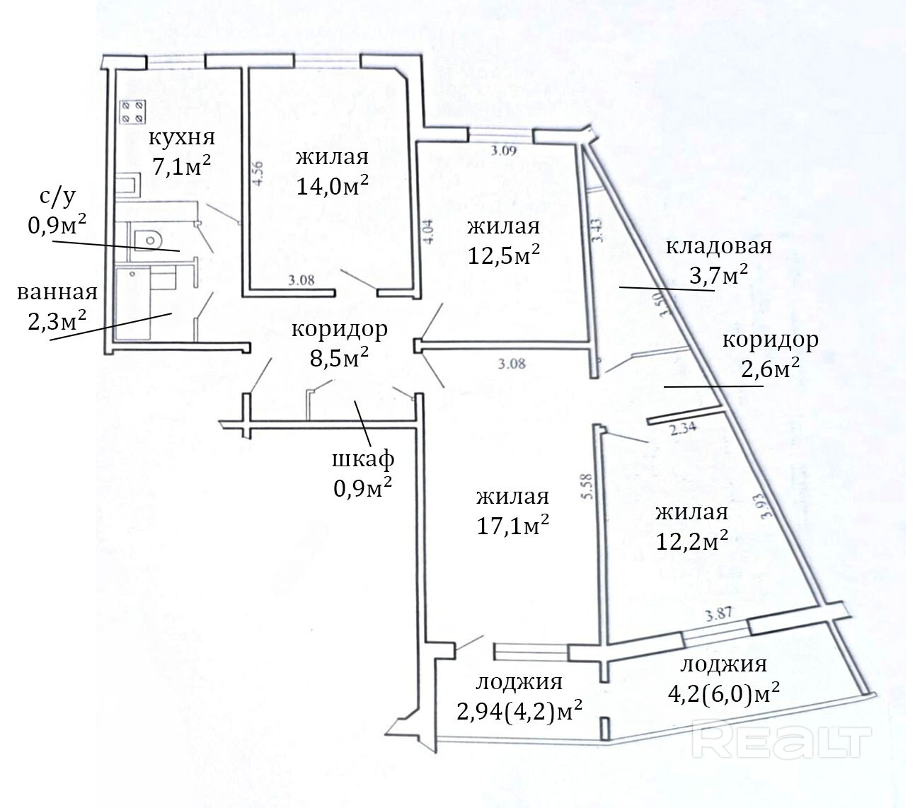7.1 м²