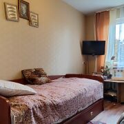 • Квартира расположена на пятом этаже, окна выходят на разные стороны (два окна в комнате). Уютный зеленый двор!