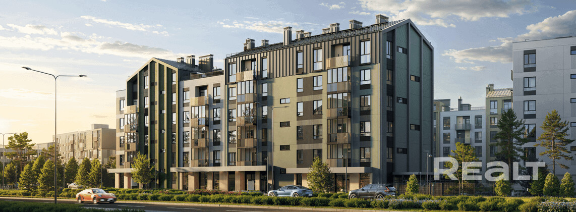 Планировки евроформата 38-116кв.м. от 2 до 6 комнат. Высота потолков 2,9м., мансардные квартиры до 7,7м. Окна с подоконной частью 47-50 см, открытыми балконами. Строительство осуществляется из железобетонных панелей, изготовленных на собственном заводе СБК.