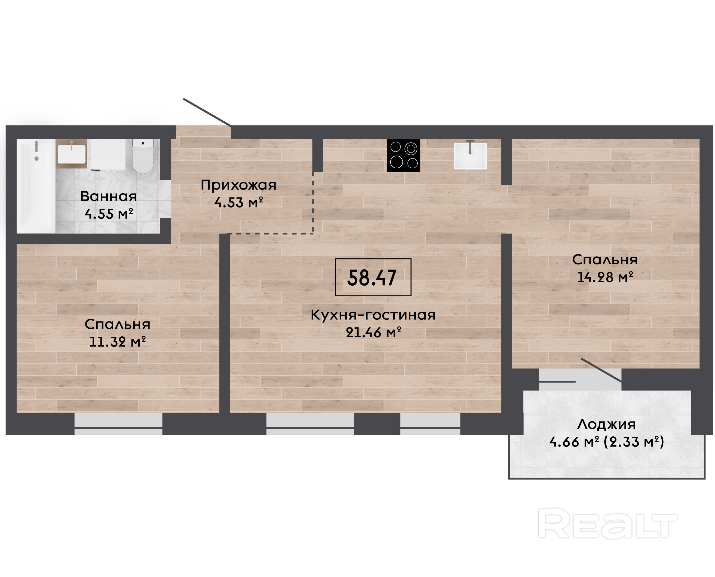 58.47 м²