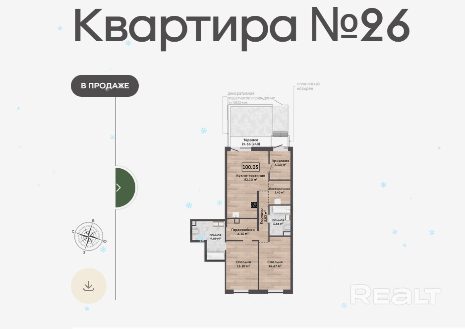Квартира №26 в ЖК Зеленая Гавань. Кредит, рассрочка. Подберу лучший вариант. Подробности по телефону и в офисе.