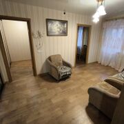 Квартира в хорошем жилом состоянии. Окна стеклопакеты, полы ламинат, потолки натяжные, входная дверь металлическая. Комната 12 кв м разделена на две не капитальной перегородкой с отдельными входами из большой комнаты.