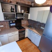 - Квартира в хорошем состоянии: напольное покрытие в комнатах – натуральная доска и паркет, в санузлах – плитка, современная сантехника. Межкомнатные двери -массив. Остается вся встроенная мебель, встроенная кухня со всей техникой, остальная мебель– по договорённости.