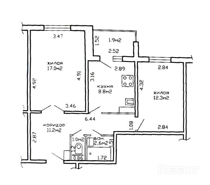 - Площадь кухни