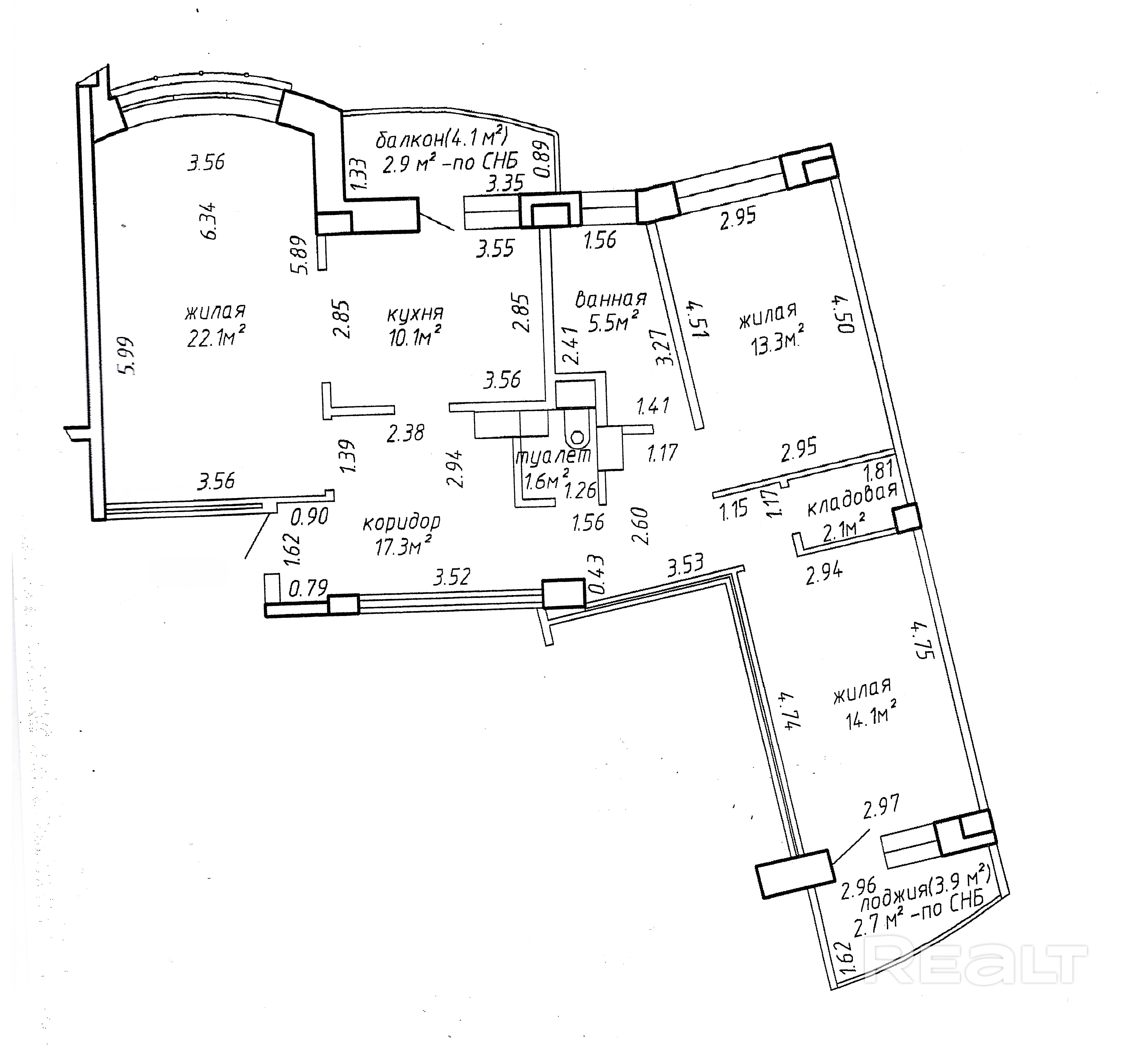 - Площадь квартиры по СНБ 91,7
