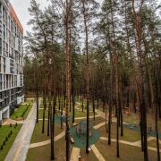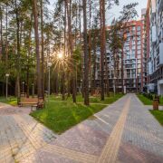 ► Двор закрыт от машин и ориентирован на безопасность и комфорт: релакс-зоны с шезлонгами, детские и спортивные площадки, экотропы, амфитеатр и прогулочные маршруты. Территория огорожена, доступ — только для жителей.